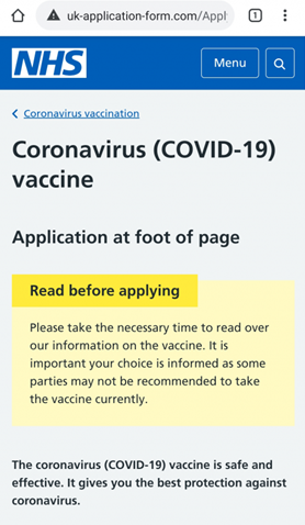“But as with all scams, if you look a little closer, you will see it is not real. In this instance, note the URL is not www.nhs.uk/